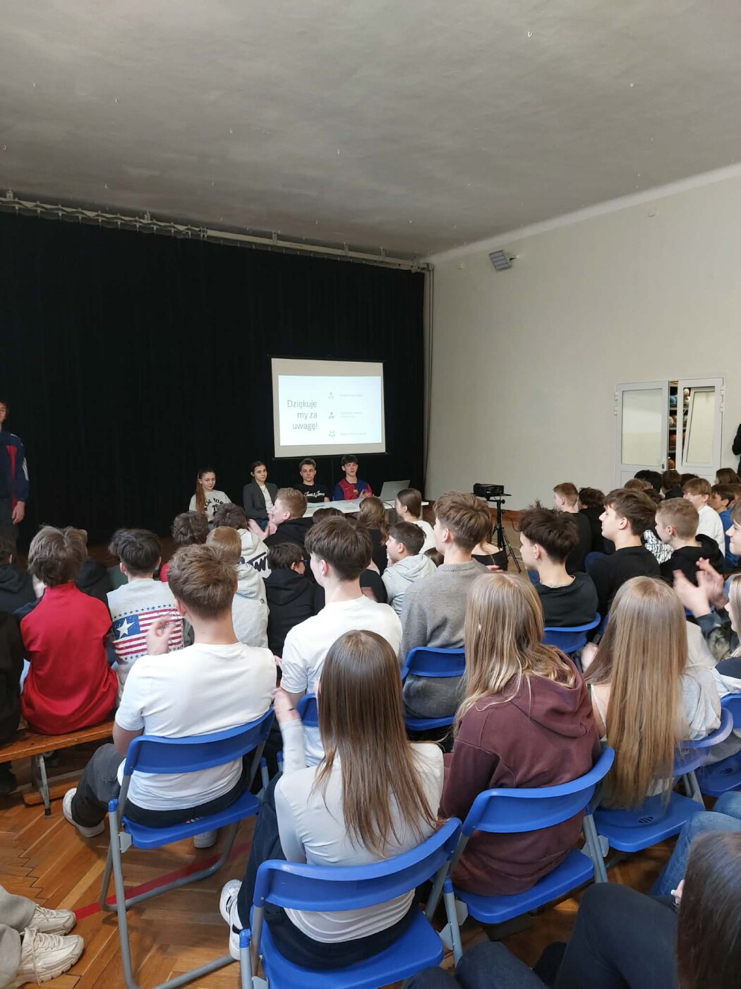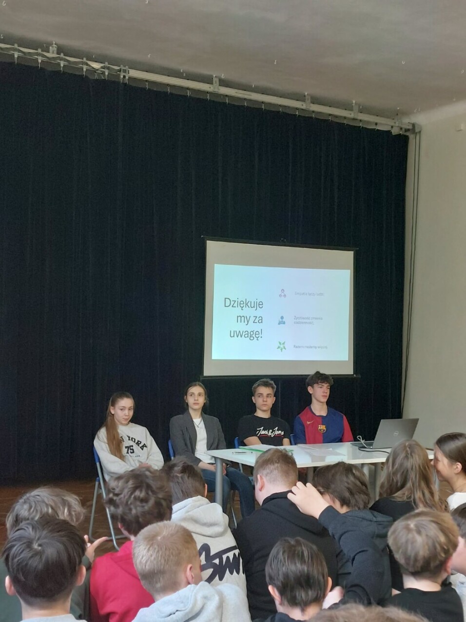 Empatia, życzliwość – siły, które zmieniają świat - pod takim hasłem klasa 8a pod kierunkiem p. Elżbiety Karwowskiej w czwartek 12.03. zaprezentowała aktualność zagadnienia. Prowadzącymi spotkanie byli: Stanisław Bańka, Julia Brzozowska, Anna Sajdych, Filip Opęchowski i Kacper Kosowski. Dobre przygotowanie i swoboda przekazu uświadomiły, że zachowania empatyczne mają wpływ nie tylko na innych, ale również na nas samych. Małe gesty kryją wielką moc i mogą zapobiegać złości, izolacji, a nawet zaburzeniom psychicznym.