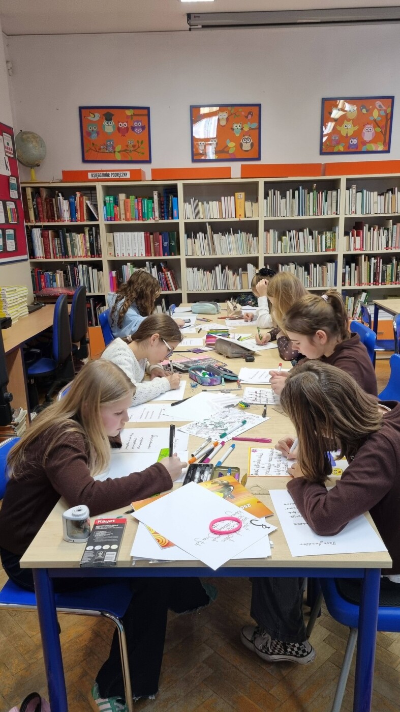 Szkolny etap IX OGÓLNOPOLSKIEGO KONKURSU KALIGRAFICZNEGO IM. JANUSZA KORZENIOWSKIEGO "Piórem I pazurem" już za nami. Czekamy na ogłoszenie wyników. W tym roku zadanie konkursowe w etapie szkolnym polegało na pięknym przepisaniu zadanego tekstu z możliwością ozdobienia tekstu iluminacjami, inicjałem lub bordiurą.
