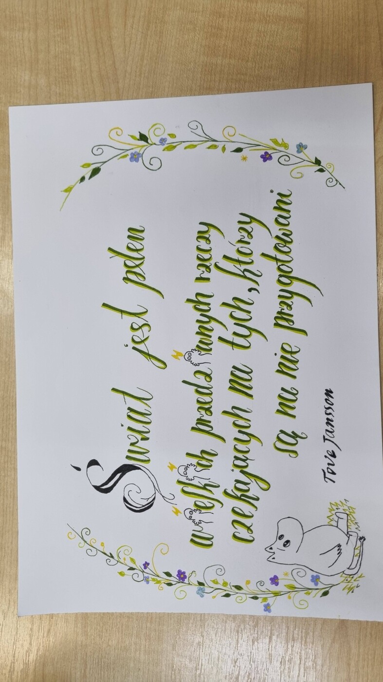 Teksty do pięknego pisania zostały przez organizatora Academy International Wawer wraz z Warszawskim Domem Kaligrafii wybrane ponieważ Muminki świętowały swoje 80. urodziny w 2025 roku. 80 lat postaci, które pokochały miliony czytelników na całym świecie.