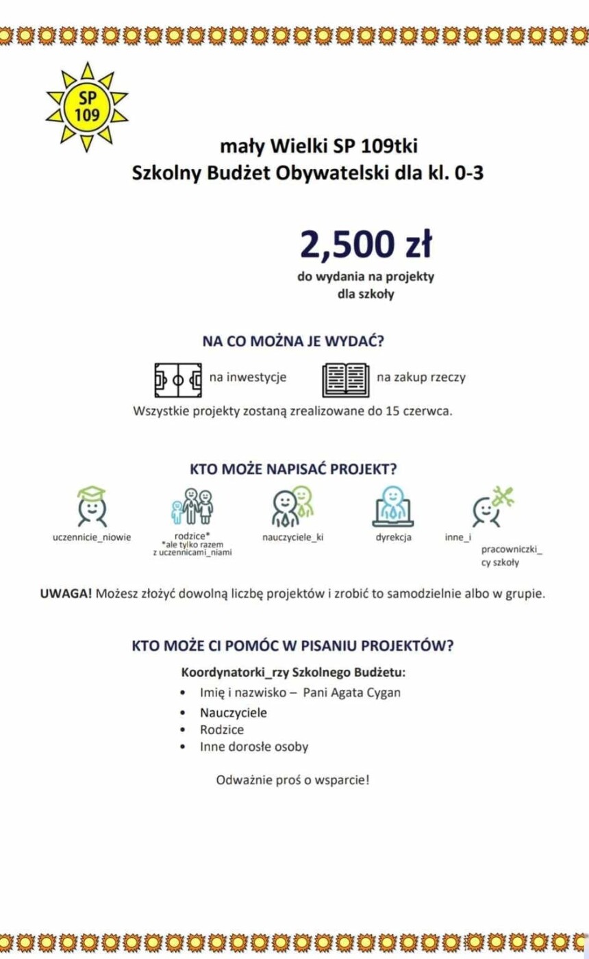 W naszej SP 109 ruszyła trzecia edycja Małego Szkolnego Budżetu Obywatelskiego dla kl. 0-3.