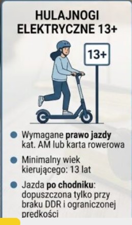 Minimalny wiek użytkownika hulajnogi elektrycznej to 13 lat.